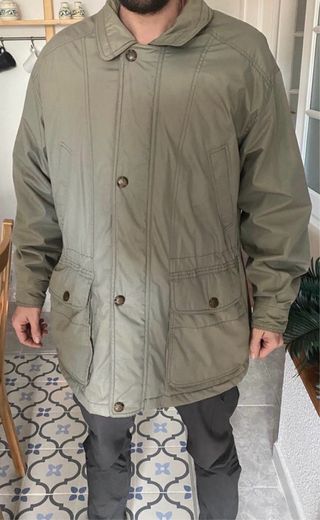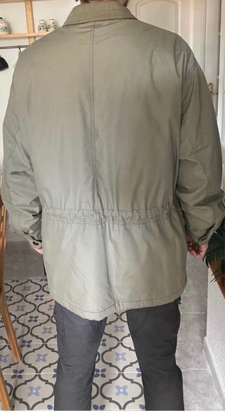 Prenda muy bien cuidada ideal para el frío, muy completita con su cremallera y broches para cerrar hasta el cuello, lleva incorporada su capucha muy cómoda y con cuatro bolsillos exteriores y otro en su forro interior, es verde oscura 100X100 algodón.