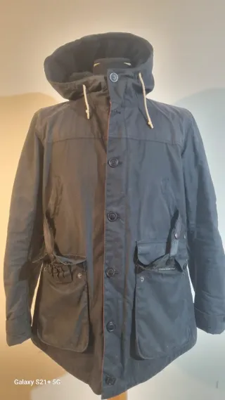 Anorak tipo parka con capucha, ideal para protegerse del frío y la lluvia. - Cierre de cremallera y botones. - Bolsillos frontales con cremallera. -en buen estado solo tiene una pequeñìta quemadura en el puño , se puede apreciar en la ùltima foto