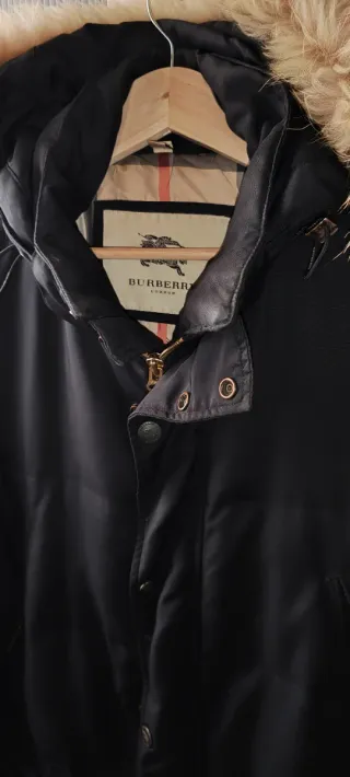 Parka de la marca Belstaff en talla XL. Un clásico diseño de estilo urbano. - Color beige con detalles en negro. - Cierre de cremallera y botones a presión.