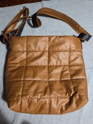 Bolso acolchado con un diseño único. - Hecho a mano por modista. - Combinación de colores dorado y negro. - Cierre con cremallera. - Forrado con bolsillo interior