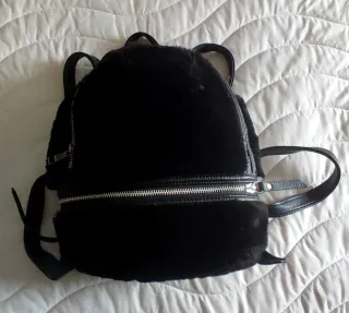 Mochila pequeña y suave, perfecta para llevar lo esencial. Su diseño moderno la hace ideal para cualquier ocasión. - Material exterior de peluche. - Cierre principal con cremallera plateada. - Bolsillo frontal con cremallera. - Asas ajustables.