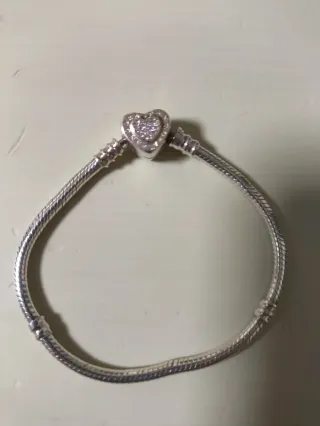Elegante pulsera estilo cadena de serpiente con un charm central en forma de corazón adornado con pequeñas piedras brillantes. Incluye su caja original. - Longitud: 18 cm. - Diseño de corazón con circonitas.
