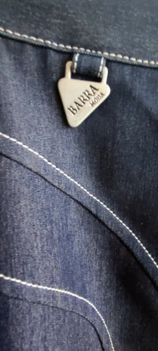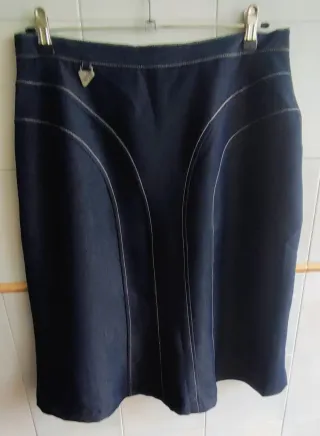 Falda de corte moderno en tejido denim. - Diseño con costuras decorativas. - Detalle metálico en la cintura.
