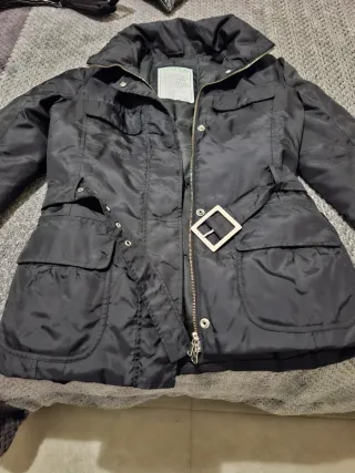 Chaqueta de estilo parka para mujer. - Diseño con múltiples bolsillos. - Cinturón ajustable con hebilla. - Cuello alto. - La talla es 42 ,pero es una 42 muy pequeña.