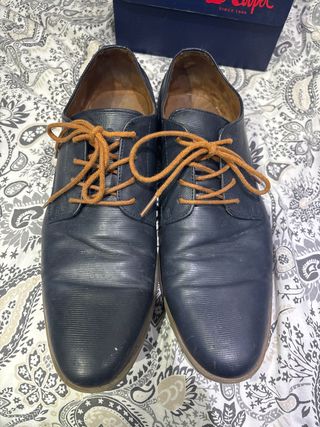 Elegantes zapatos de vestir en tono azul marino. Perfectos para ocasiones formales o para añadir un toque sofisticado a tu atuendo. - Diseño de cordones. - Acabado texturizado. - Suela de goma.
