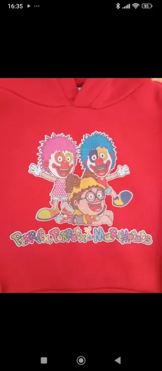 Sudadera con estampado de los personajes Pirritx, Porrotx y Marimotots. Usada pero en muy buen estado - Diseño divertido y colorido. - Tejido suave y cómodo.