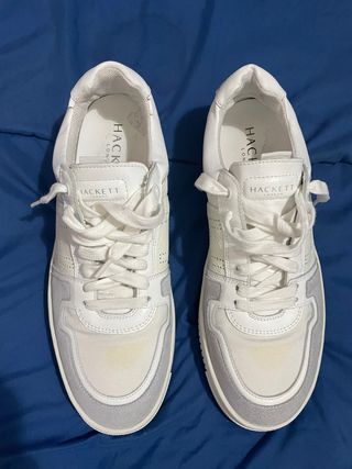 Marca: Hackett Modelo: Dexter Winter Color: Blanco y gris Características: Son zapatillas de piel con un diseño casual y detalles microperforados en los paneles laterales.