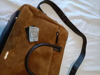 Bolso de mano y hombro Misako. Nuevo a estrenar, aún con la etiqueta. 40 x 22 x 10. Precio original 35 euros. Rebajado - Material exterior de ante. - Base y asas de piel. - Cremallera superior y bolsillo frontal con cremallera.