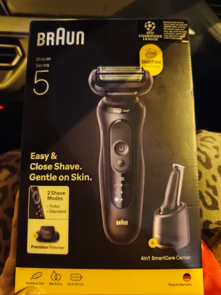 Afeitadora eléctrica Braun Serie 5 S5. - Tecnología SkinFlex. - 2 Modos de afeitado: Turbo y Estándar. - Incluye recortador de precisión. - Centro SmartCare 4 en 1. - Uso en seco y húmedo. - Batería Li-Ion con hasta 50 min de autonomía. - Fabricada en Alemania.