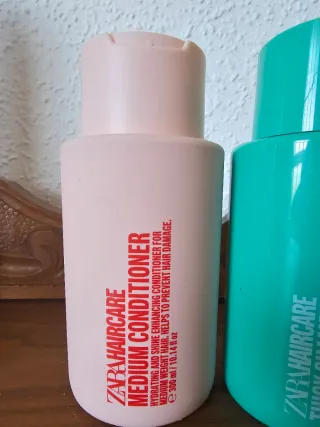 Lote de tres productos para el cuidado del cabello de Zara. - Champú Thick para cabello grueso. - Acondicionador Medium para cabello medio. - Acondicionador Fine para cabello fino.