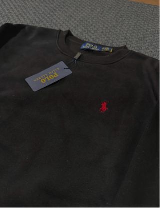 Sudadera clásica de Polo Ralph Lauren. - Logo del jugador de polo bordado en rojo en el pecho. - Cuello redondo y manga larga.
