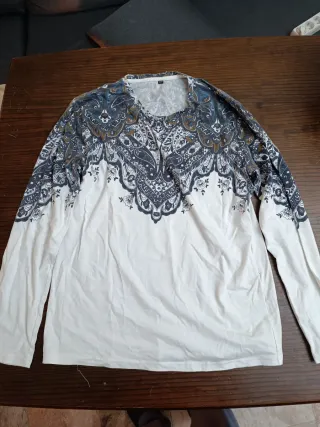 Camiseta de manga larga con un diseño estampado en la parte superior. - Diseño paisley. - Cuello redondo. - Manga larga.