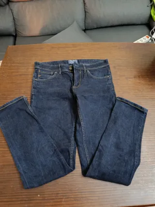 Pantalón vaquero de corte clásico. Tiene un descosido en el lateral, se ve en l a segunda foto. Usado dos veces, como nuevo. - Tejido denim resistente. - Cierre de cremallera y botón. - Bolsillos delanteros y traseros.