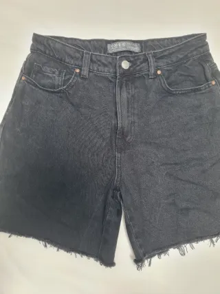 ♦️Shorts vaqueros color negro 38 ♦️Muy nuevo Un básico para tu armario. - Diseño de tiro alto. - Corte desgastado en el bajo. - Cierre de botón y cremallera.