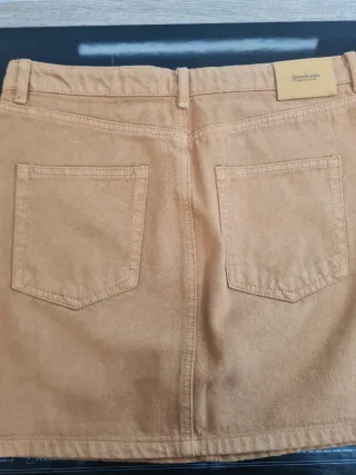Preciosa falda midi de vuelo en tonos calabaza con un detalle de lazo en la cintura, queda a la altura de la rodilla. Tejido grueso, con mucha caída. En la talla pone 4 pero es equivalente a una 38/40. A estrenar.
