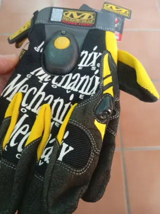 Guantes de trabajo Mechanix Wear con detalles en amarillo. - Cierre de velcro ajustable en la muñeca. - Diseño ergonómico para mayor comodidad. - Materiales resistentes para protección. - los dos guantes tienen un luz led en el dedo indice