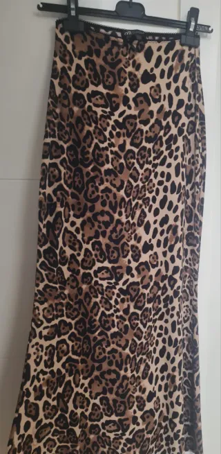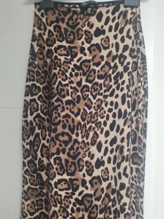 Falda larga con un llamativo estampado de leopardo. Zara Talla S NUEVA , NUNCA USADA - Diseño fluido. - Cintura con detalle de encaje negro.