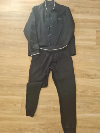 Conjunto deportivo de dos piezas. Antonio Morato (Original) Chaqueta talla L Pantalón talla M Como nuevo, usado una única vez. - Chaqueta con cuello redondo y cierre de botones. - Pantalón con cintura elástica y cordón. - Puños y cuello con detalles de ribete blanco.