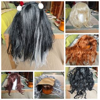 Se pueden comprar individualmente. Con poco uso Las de pelo corto / calva a 3€ Las de pelo largo a 5€ La de pelo largo negra y blanca a 8€ Hay que peinarlas un poco Para despedidas de solter@ disfraz...atrezzo ....teatro ..