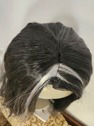 Peluca de plástico. Es de color negro con reflejos blancos. -Está en muy buen estado.
