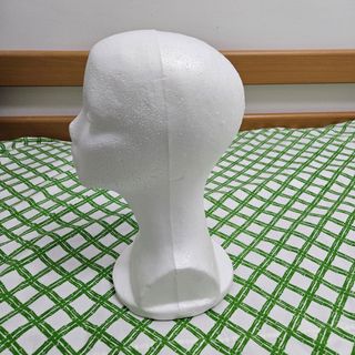 Preciosa cabeza de maniquí de poliespán, ideal para tus proyectos creativos. Es blanca y tiene una textura ligeramente rugosa. - Perfecta para colocar pelucas, sombreros o accesorios. - Material ligero y fácil de manipular. - Ideal para principiantes y profesionales.