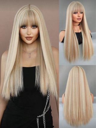 Peluca larga rubia lisa mechas sintética calidad