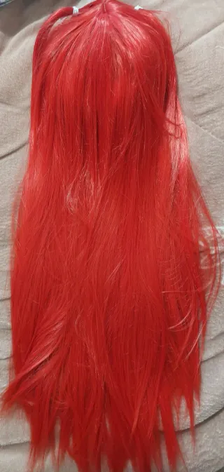 Peluca de cosplay de color rojo vibrante y largo. - Fibra sintética de alta calidad. - Diseño liso y sedoso. - Ideal para personajes de anime o fantasía.