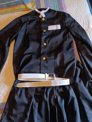 Se vende cosplay de 9S. Incluye lo siguiente. El traje, el collar, la venda para los ojos, los pantalones, y aparte tengo los guantes y la peluca. Incluye todo lo de la foto con posibilidad de hacer pack con la espada del perfil. Importante: Es una talla L, y como referencia, yo mido 1,79 y me está perfectamente.