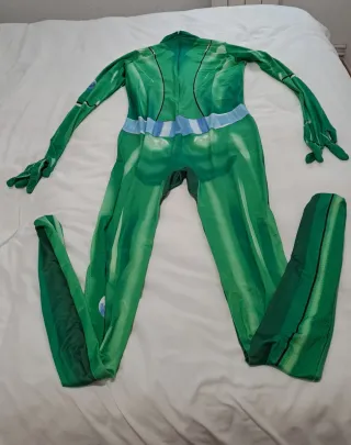 Disfraz de extraterrestre, hombre del futuro o del espacio. - Traje principal azul con detalles plateados y verdes que consta de casaca y pantalones. - Incluye peluca verde, capa plateada y antenas. - Queda super chulo y tengo el de mujer a juego y uno de cohete para niño o niña. - Pregúntame precio si te llevas más de uno!!!!