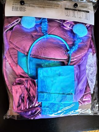 Incluye el vestido y la diadema. No incluye los leggins ni la peluca ni los brazaletes. No se ha usado. Sólo se abrió para probar.