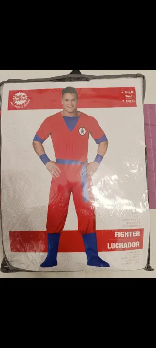 Disfraz de luchador inspirado en Goku, incluye peluca. Nuevo a estrenar . Es rojo y azul , no naranja - Traje de dos piezas en rojo y azul. - Puños y cinturón a juego. - Botas azules. - Peluca negra de goku Talla L Carnaval