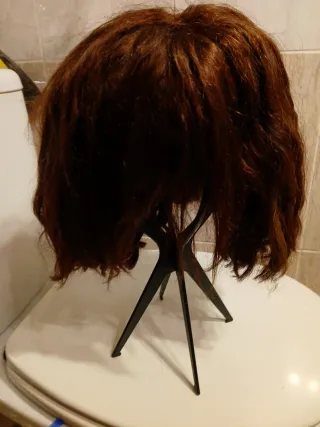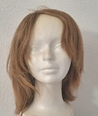 Peluca de pelo natural con un bonito tono castaño. Ideal para un cambio de look o para ocasiones especiales. Hecha a mano - Pelo 100% natural. - Color castaño. - Textura suave y sedosa.