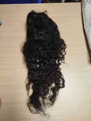 Peluca de pelo natural con un bonito acabado ondulado. - Pelo 100% natural. - Color negro intenso. - Base de encaje para un ajuste natural. -Mide entre 40 centímetros y 45 centímetros. Cualquier duda podéis preguntar y más artículos en mi perfil