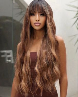 Peluca sintética con un degradado de color. - Fibra sintética de alta calidad. - Diseño largo y ondulado.