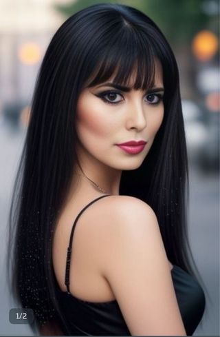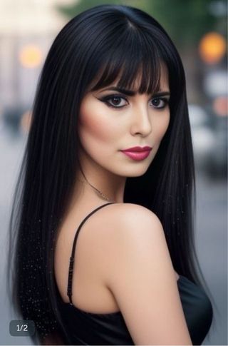 Preciosa Peluca negra con flequillo
