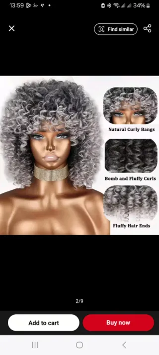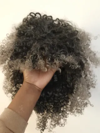 Peluca rizada sintética gris y negra 22 pulgadas