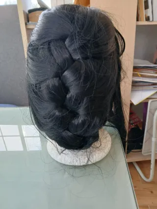 Peluca larga cabello natural Color: castaño Medidas de largo: 46 cm Fecha adquisición: 17/02/2025 Incluye busto de corcho. Busto plegable. Caja para guardarla Costó 1450 € . Tiene la factura para su comprobacion