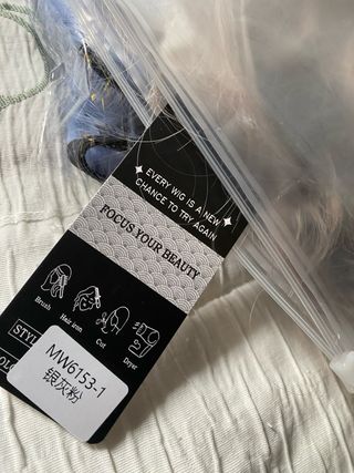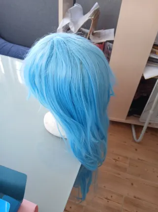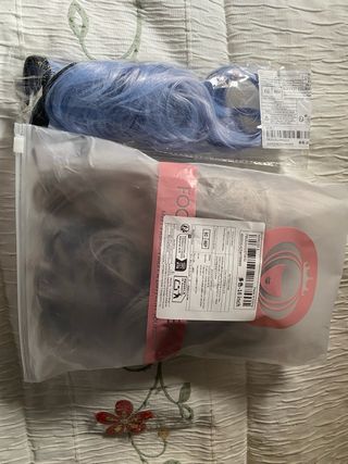 Extensión de clip color azul bruma (50-51 centimetros) y peluca color plateado/gris con mechas negras que puedes estilizar, fotos incluidas. Ambas de cabello sintético, la peluca era la única con una etiqueta que aún conserva, viene con gorrito ajustable. No se han usado, la peluca era para una fiesta pero llegó pasada la fecha y la extensión es color erróneo (se abrió el plástico solo para ver si el color convencía, pero no). - El precio del anuncio es por ambas, pero también es posible venta por separado; extensión 2€ y peluca 11,35€ • Sólo envíos • Shipping all Europe