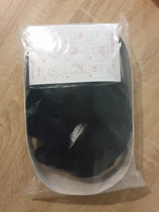Peluca de cabello sintético de color negro. Ideal para disfraces o eventos. - Textura suave y natural. - Fácil de peinar.