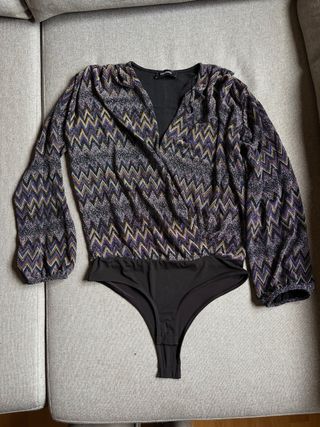 Body de manga larga con un llamativo estampado de zigzag en tonos multicolor. El diseño cruzado en la parte superior le da un toque elegante. - Estampado zigzag. - Manga larga. - Diseño cruzado.