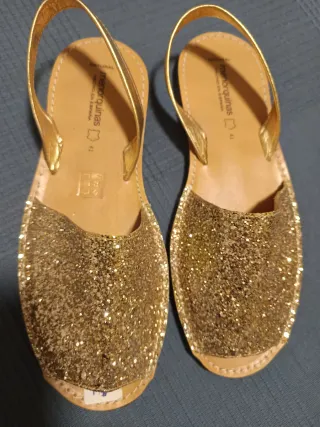 Menorquinas Doradas Glitter Talla 41 talla pequeño