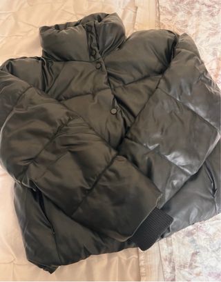 Abrigo acolchado de efecto piel con cuello alto. - Cierre de botones a presión. - Bolsillos laterales.
