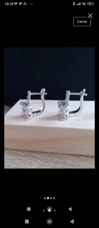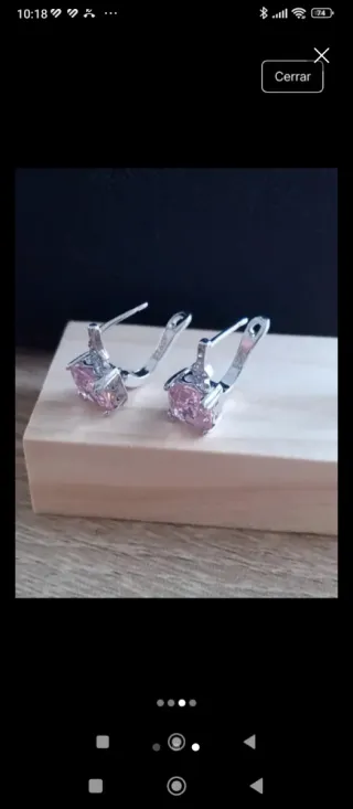 Elegantes pendientes con circonita rosa y detalles plateados. - Diseño moderno y brillante. - Cierre seguro y cómodo.