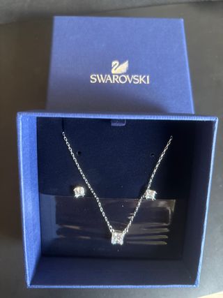 Elegante conjunto de collar y pendientes de la marca Swarovski. - Diseño con cristales. - Acabado plateado.