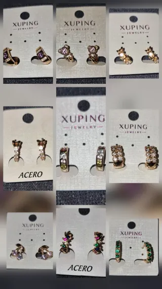 Conjunto de pendientes de la marca XUPING,4 euros cada par. - Diseño con detalles en dorado. - Acentos de colores vibrantes.