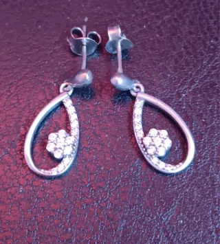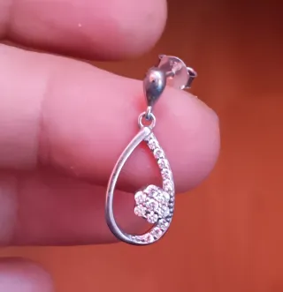 Elegantes pendientes de plata de ley 925 con un diseño de lágrima y detalle floral. - Elaborados en plata de ley 925. - Adornados con circonitas brillantes. - Diseño de lágrima con flor central.