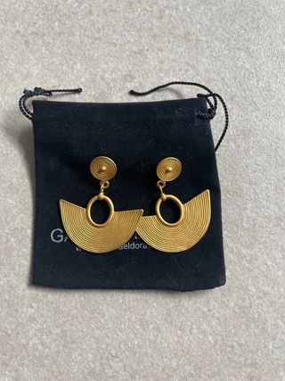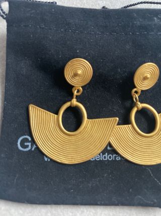 Elegantes pendientes con diseño abanico y detalles en espiral. - Material: Latón chapado en oro de 18 quilates. - Acabado brillante.