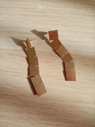 Pendientes largos con un diseño moderno y elegante. - Piezas cuadradas superpuestas. - Cierre de presión.