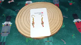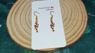 Pendientes con un diseño festivo de bastón de caramelo, perfectos para la temporada navideña. Cuentan con un acabado esmaltado que resalta los detalles. - Diseño de bastón de caramelo. - Adorno de lazo verde y rojo.