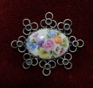 Precioso broche antiguo de porcelana pintado a mano y esmaltado.Mide 4.5 cms. 25€ Pendientes 20€